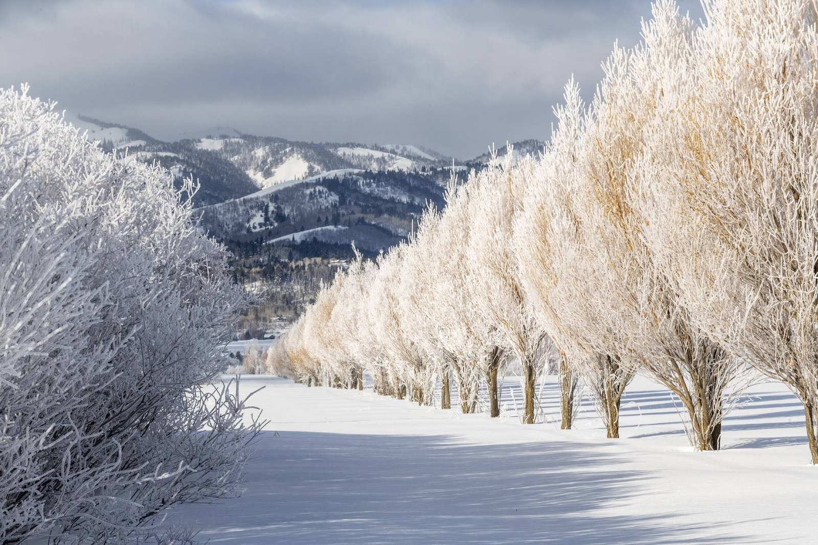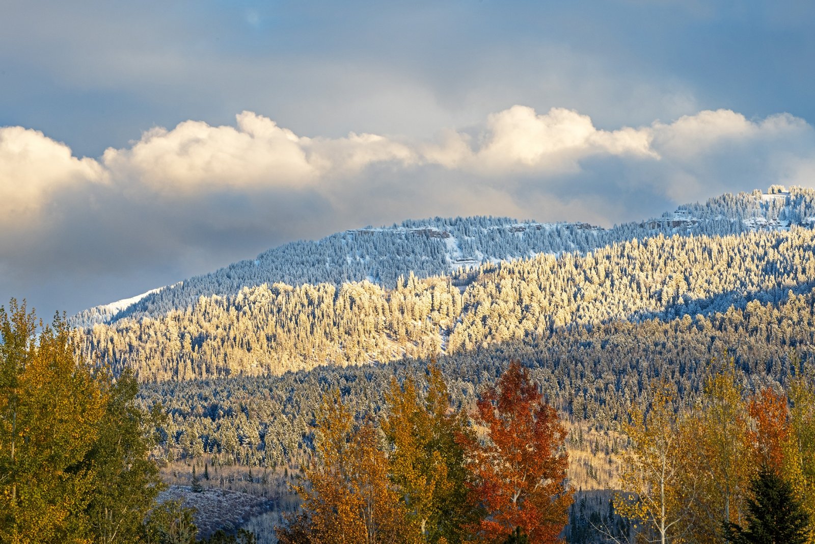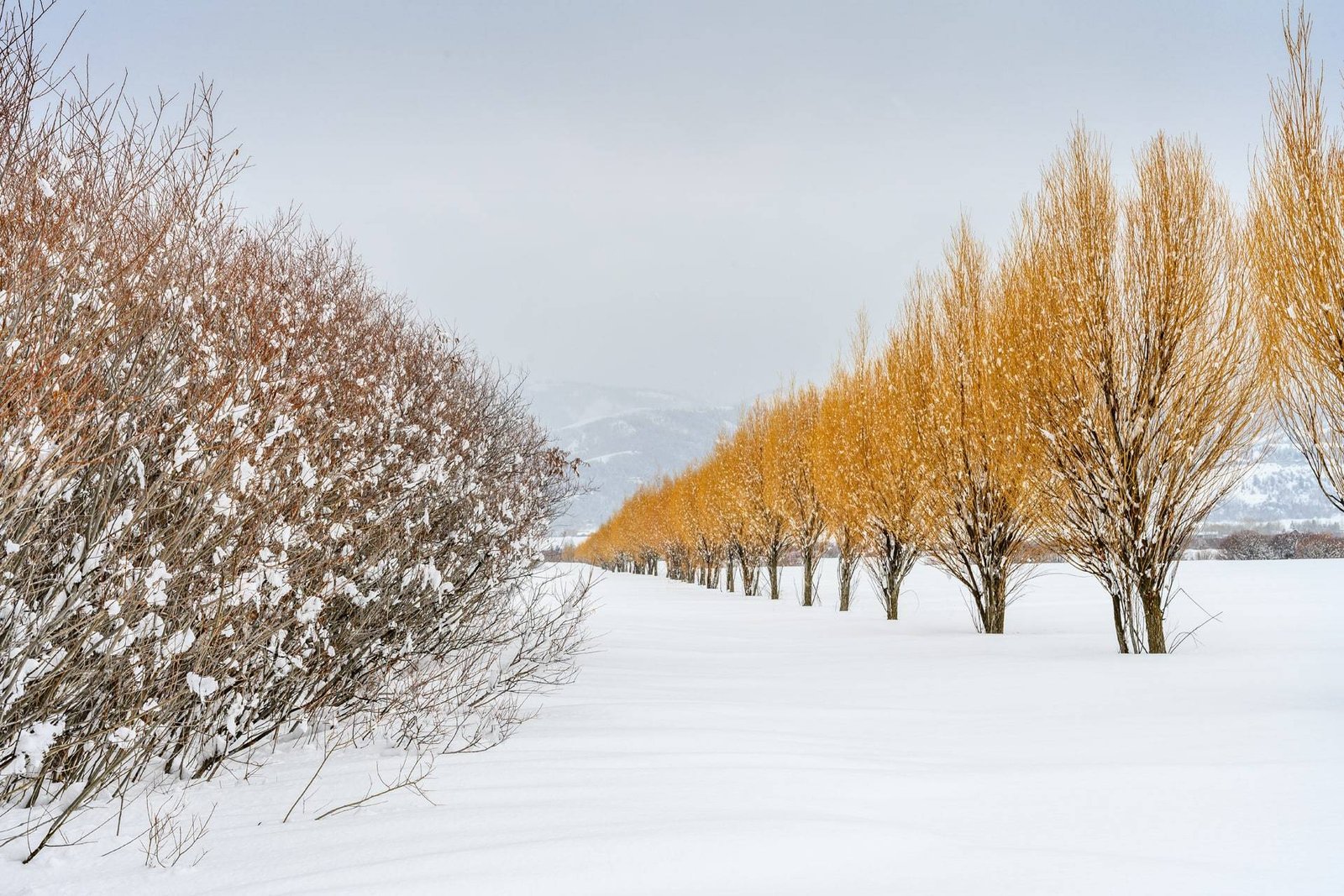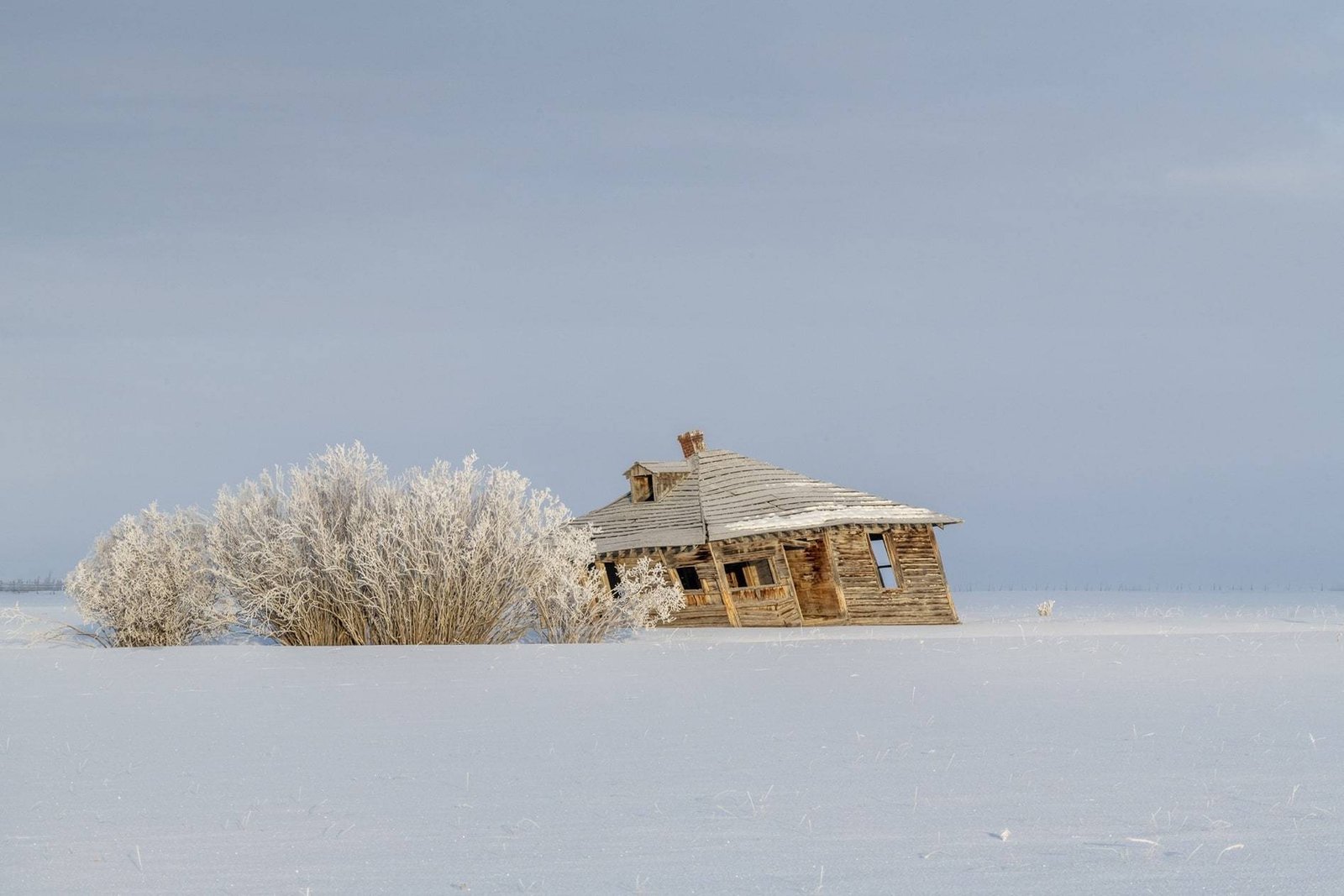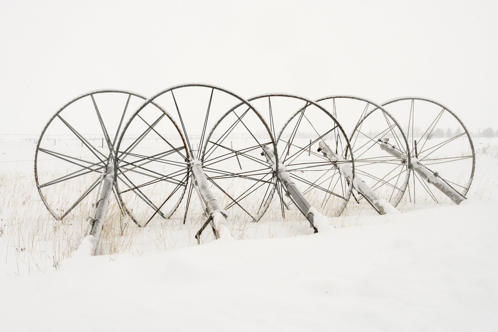 Above: An early snow covers the ground under a discrete stand of Cottonwood trees that tower over several abandoned buildings on Sidewinder Road off the Missouri Valley Road, north of Riverton, Wyoming.